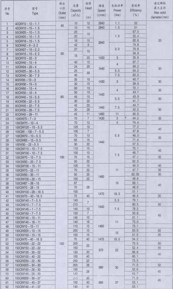 QW型系列混流式潛水泵系單級、單吸、軸向吸入、立式、機電一體、葉輪與電機軸直聯(lián),潛入泥漿、原油或清水等介質(zhì)中工作,輸送介質(zhì)的混合物比重為1:1-1:1.45。是油田石漬鉆井過程中抽送漿、清水或原油至循環(huán)泥漿池的配套設備。也是電廠礦山、煉油、造紙、印染、環(huán)保、市政工程、化工、漁塘鹽廠、釀造、大理石廠、建筑、煤礦等行業(yè)抽排泥漿和污水理想的泵型。同時,也可根據(jù)用戶的實際使用要求及介質(zhì)情況,設計生產(chǎn)其它規(guī)格型號產(chǎn)品.