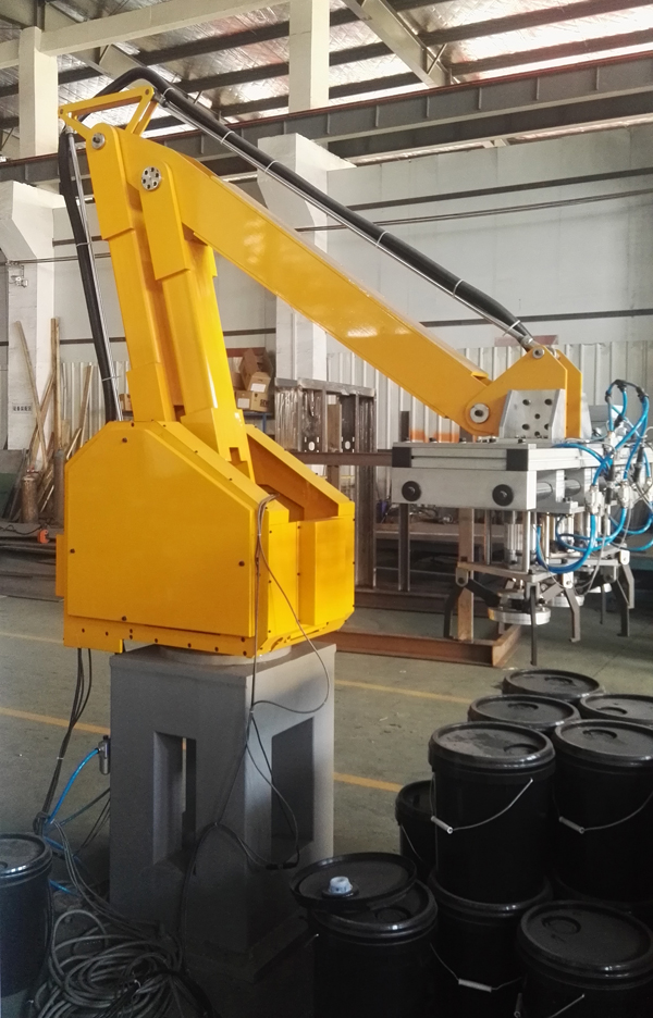 該碼垛專用機器人為本公司自制設(shè)備,用于箱,桶的自動碼垛,速度為中速,碼垛速度為